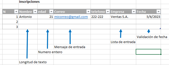 Descarga el siguiente archivo para examinar los ejemplos de validación de datos.xlsx,