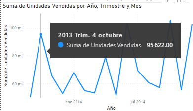 Los objetos visuales se componen de puntos de datos. Al mantener el puntero sobre un punto de datos, puede ver los detalles de ese punto.